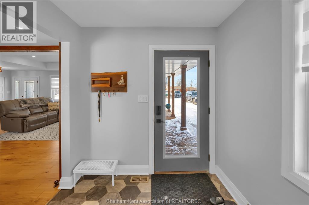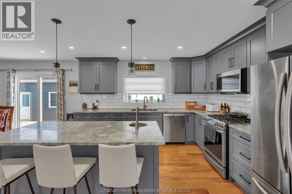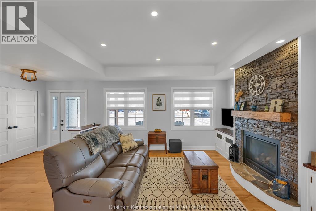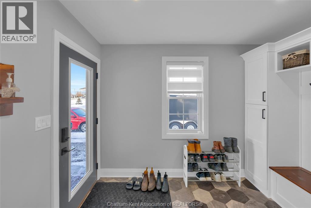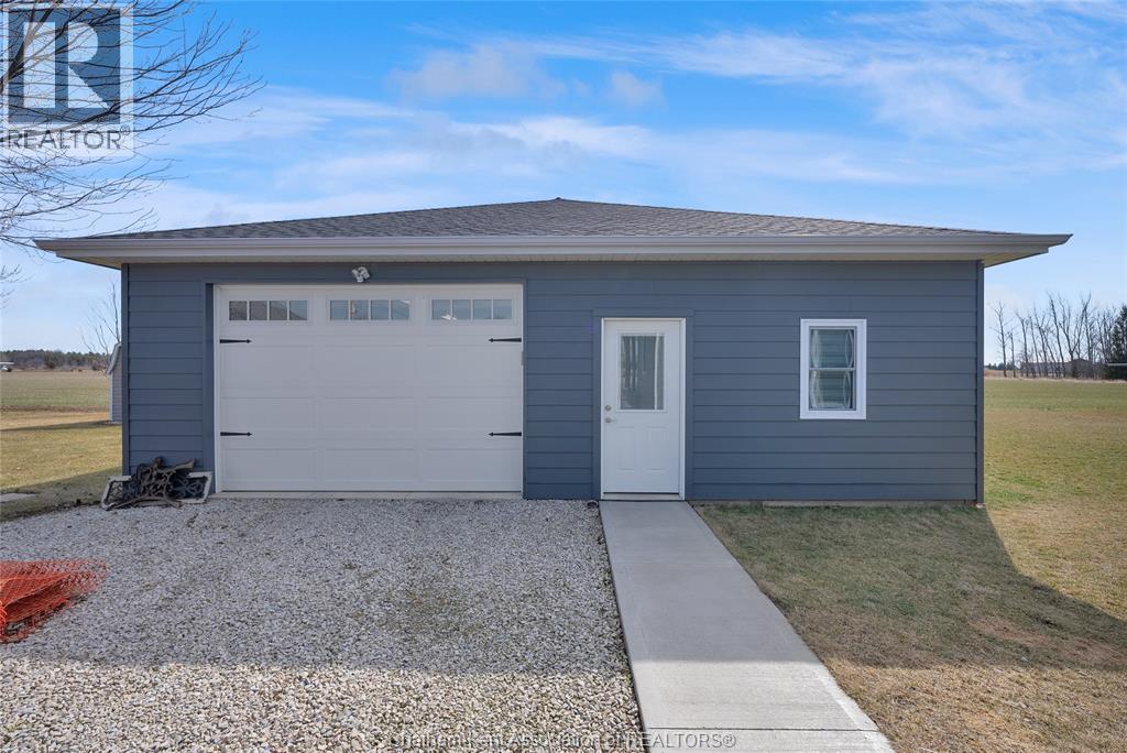 Get out of town! Seriously, take advantage of low taxes with full municipal services including sanitary sewer. This 2017 custom built 1600 sq ft ranch is a great alternative to urban living. Situated on an 85 x 154 ft lot, this 3+1 bedroom ranch has a 32x40 (1280 sq ft) insulated shop with heated floors and fully finished den area. Inside the house you will appreciate the partially open concept kitchen, dining and living area with stone surround gas fireplace and built-in cabinetry. Full tiled mudroom with custom coat rack and storage. The main floor is complete with hardwoods throughout living area and all three bedrooms. Primary bedroom has its own 3pc ensuite bathroom. Well appointed kitchen with custom backsplash, pantry, breakfast bar style island with sink and high-end ""superwhite"" quartzite countertops. Dining area is open to kitchen with sliding door to backyard. The fully finished basement adds approx 1350 sq ft of living space with large rec room, bedroom, laundry and 4 pc bathroom. Enjoy the benefits of semi-rural living with only 35 min drive to Costco in Windsor or 12 mins to Sobeys in Blenheim. Full 360° virtual iGuide tour of home and shop with floor plans and measurements. (id:4555)