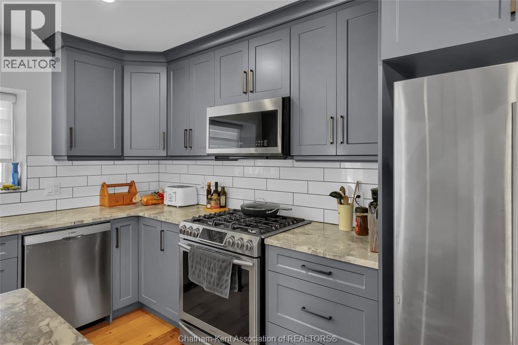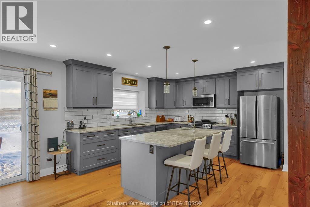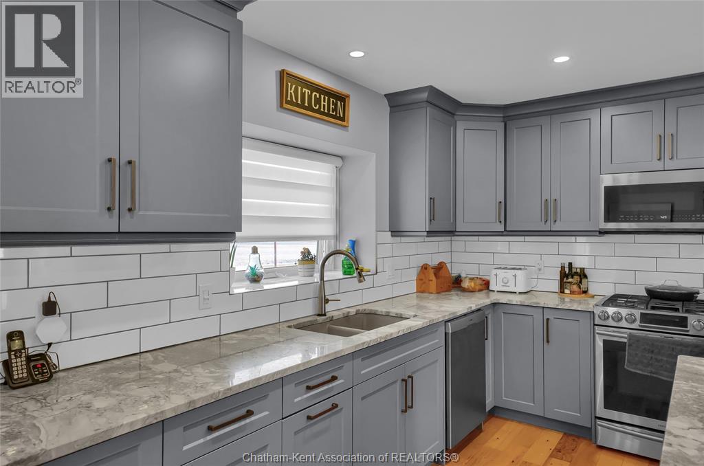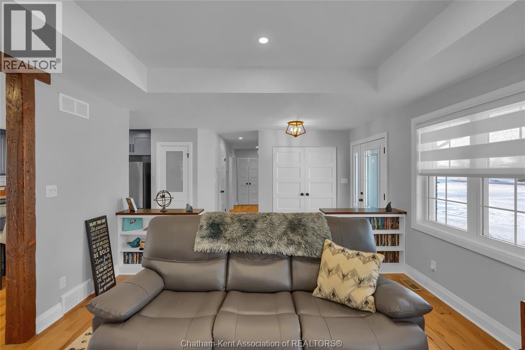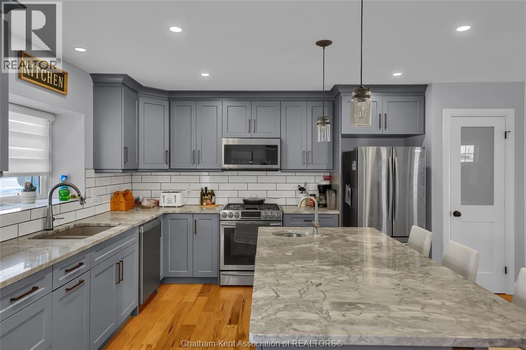 Get out of town! Seriously, take advantage of low taxes with full municipal services including sanitary sewer. This 2017 custom built 1600 sq ft ranch is a great alternative to urban living. Situated on an 85 x 154 ft lot, this 3+1 bedroom ranch has a 32x40 (1280 sq ft) insulated shop with heated floors and fully finished den area. Inside the house you will appreciate the partially open concept kitchen, dining and living area with stone surround gas fireplace and built-in cabinetry. Full tiled mudroom with custom coat rack and storage. The main floor is complete with hardwoods throughout living area and all three bedrooms. Primary bedroom has its own 3pc ensuite bathroom. Well appointed kitchen with custom backsplash, pantry, breakfast bar style island with sink and high-end ""superwhite"" quartzite countertops. Dining area is open to kitchen with sliding door to backyard. The fully finished basement adds approx 1350 sq ft of living space with large rec room, bedroom, laundry and 4 pc bathroom. Enjoy the benefits of semi-rural living with only 35 min drive to Costco in Windsor or 12 mins to Sobeys in Blenheim. Full 360° virtual iGuide tour of home and shop with floor plans and measurements. (id:4555)
